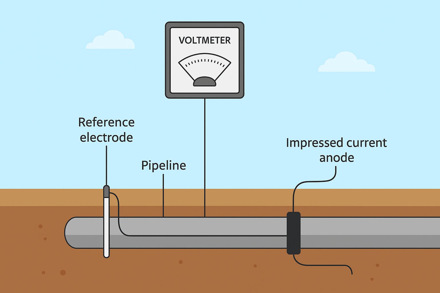 Potentiometric measurement is a common method used to determine whether sufficient cathodic protection is achieved. As the current in the environment acts on the protected structure, its potential will shift relative to the environment. This potential change represents polarization. By measuring it, one can determine whether the system meets relevant cathodic protection standards.